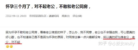 “怀孕身体不太舒服,不能啪啪啪,看老公着急的样子,觉得对不起老公!内心很愧疚!”